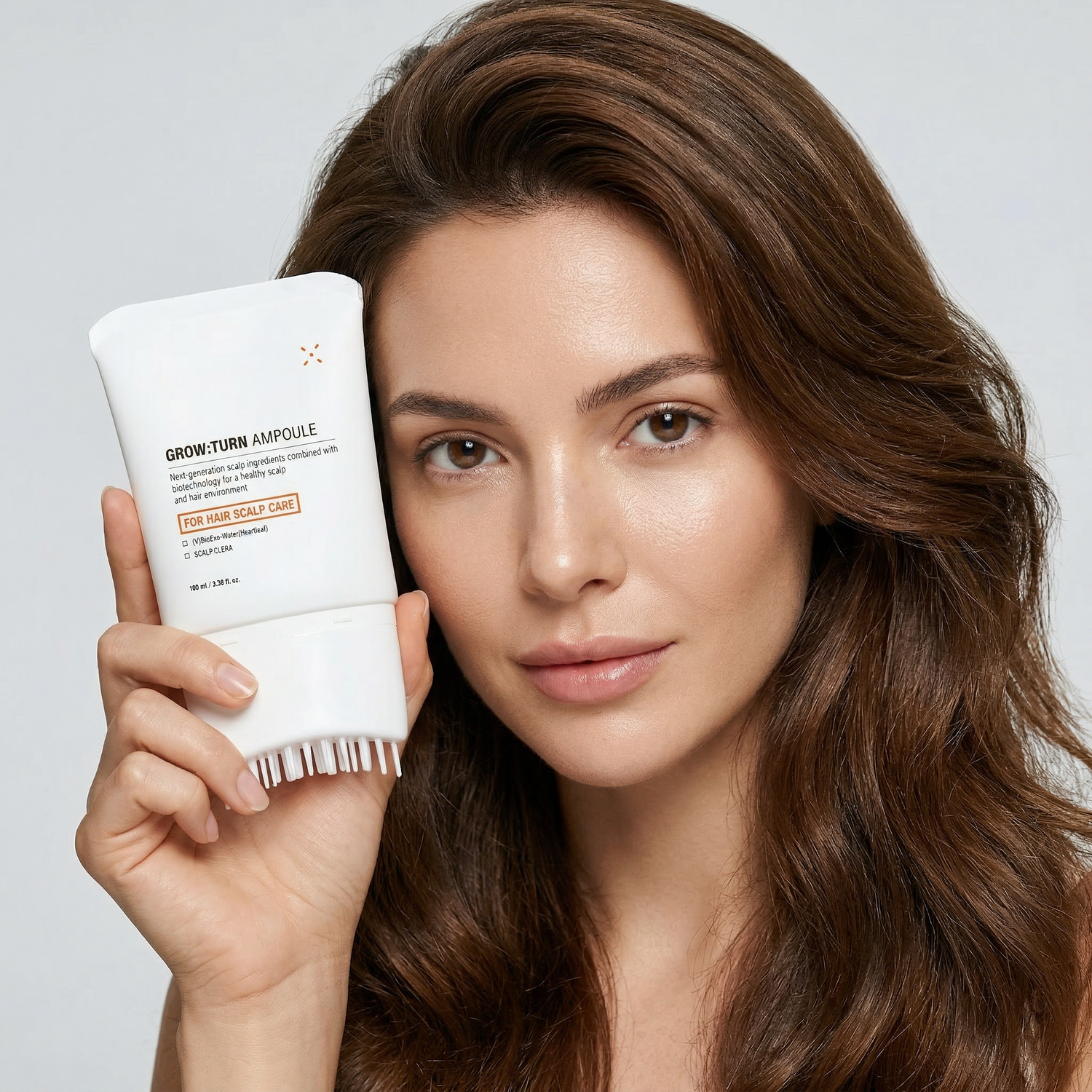 GROW:TURN uses heartleaf exosomes to deliver active ingredients directly to your scalp and hair roots. The lightweight gel absorbs instantly. Caffeine boosts circulation, menthol cools and soothes on contact. Less shedding, thicker hair, no mess.